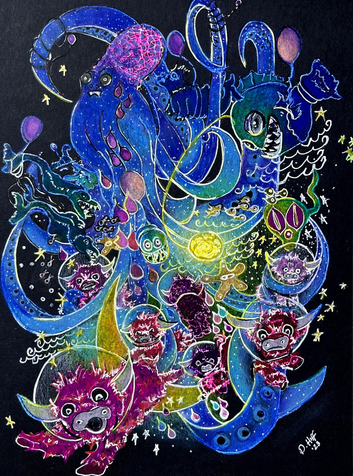 Sea Monsters v/s Baby Cows Galactic Battle Illustration.