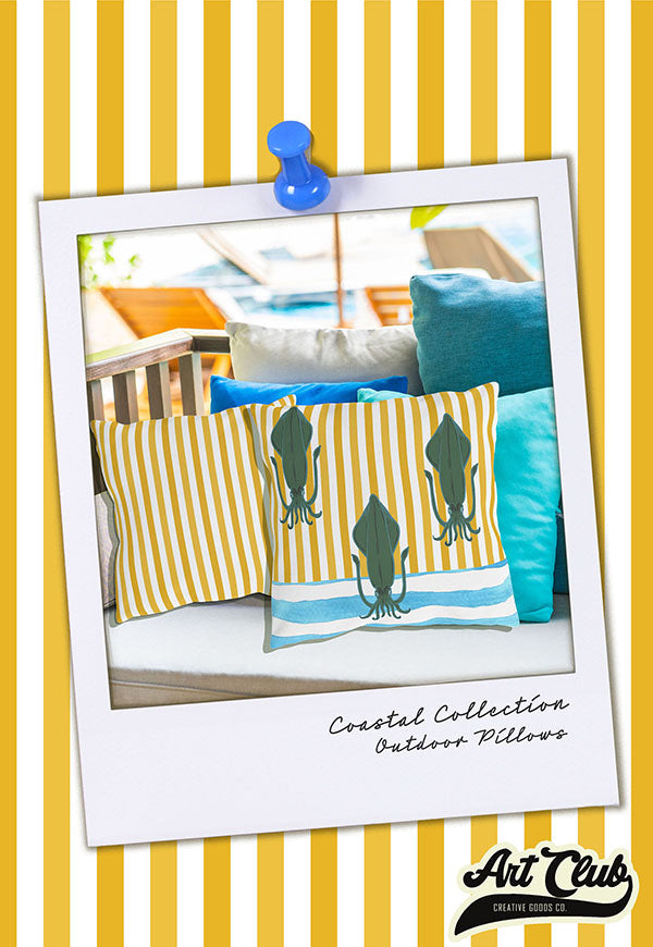 Pillow surface design and social media ad design for Art Club Creative Goods Coastal Summer 2025.